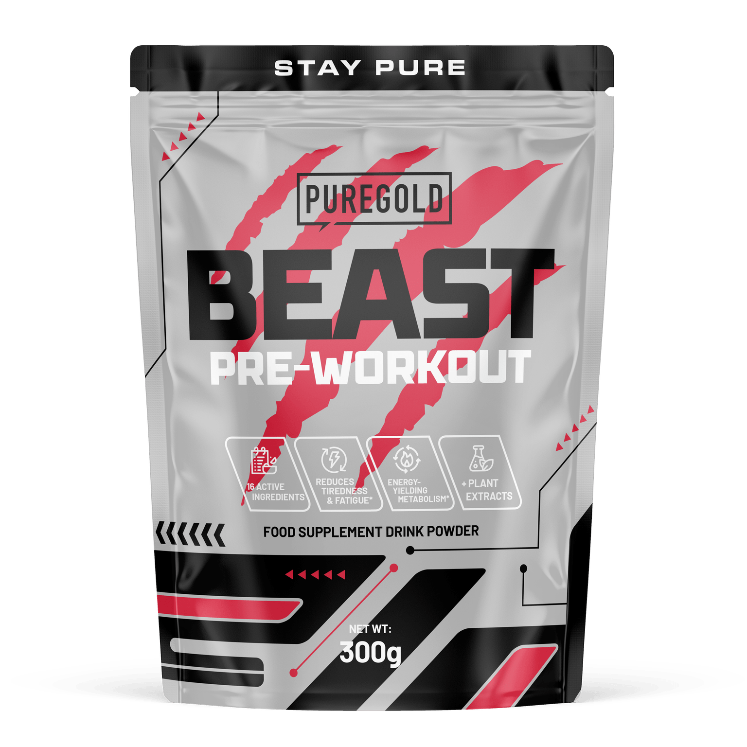 Složení: L-arginin, L-citrullin DL-malát 1:1, beta-alanin, isomaltulóza+, L-tyrosin, L-taurin, L-karnitin-L-tartrát, L-glutamin, regulátor kyselosti (bezvodná kyselina citronová), aroma, sladidla (acesulfam K, sukralóza), bezvodný kofein, protispékavá látka (oxid křemičitý, fosforečnan vápenatý), extrakt ze slupky plodu Garcinia Cambogia (Garcinia cambogia) 4:1, zelená káva (Coffea robusta L.) 12:1 extrakt ze zrn, zelený čaj (Camellia sinensis) 3-4:1 extrakt z listů, L-arginin-alfa-ketoglutarát 2:1, barviva (karoteny), zinek bisglycinát, černý pepř (Piper nigrum) 50:1 extrakt z plodů, pyridoxin-hydrochlorid. +Isomaltulóza je zdrojem glukózy a fruktózy.