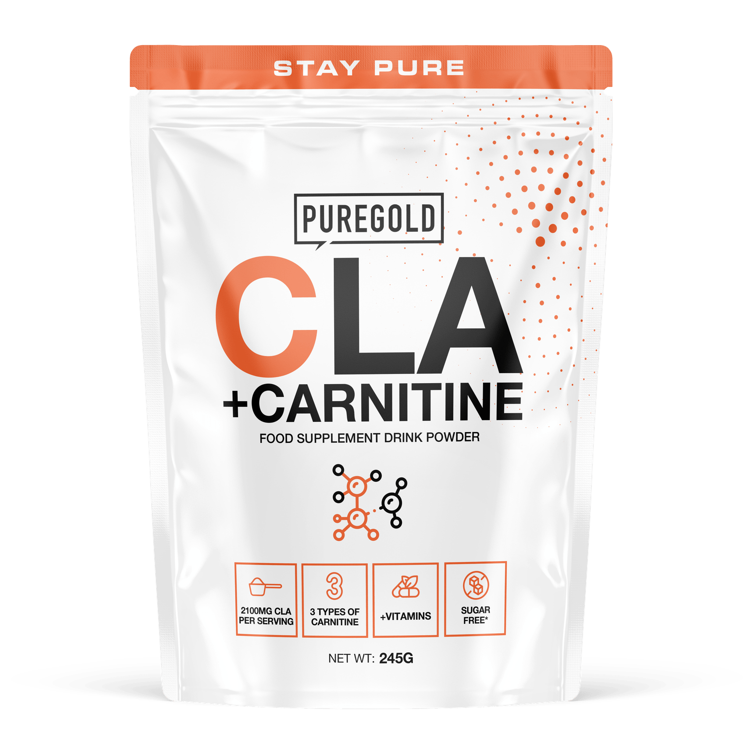 Složení: Prášek s konjugovanou linolovou kyselinou [triglyceridy konjugované linolové kyseliny (CLA) (z oleje ze semen světlice barvířské), sušený kukuřičný sirup, sodný-kaseinát, protihrudkující látka (oxid křemičitý), stabilizátor (dikaliumfosfát), antioxidanty (alfa-tokoferol, askorbyl-palmitát)], L-karnitin-L-tartrát, regulátor kyselosti (bezvodá kyselina citronová), aromata, acetyl-L-karnitin hydrochlorid, L-karnitin, protihrudkující látka (oxid křemičitý), sladidla (acesulfam K, sukralóza), barviva (karoteny), bisglycinát zinečnatý, nikotinamid, černý pepř (Piper Nigrum) 50:1 extrakt z plodů, pyridoxin-hydrochlorid, pikolinát chromu.