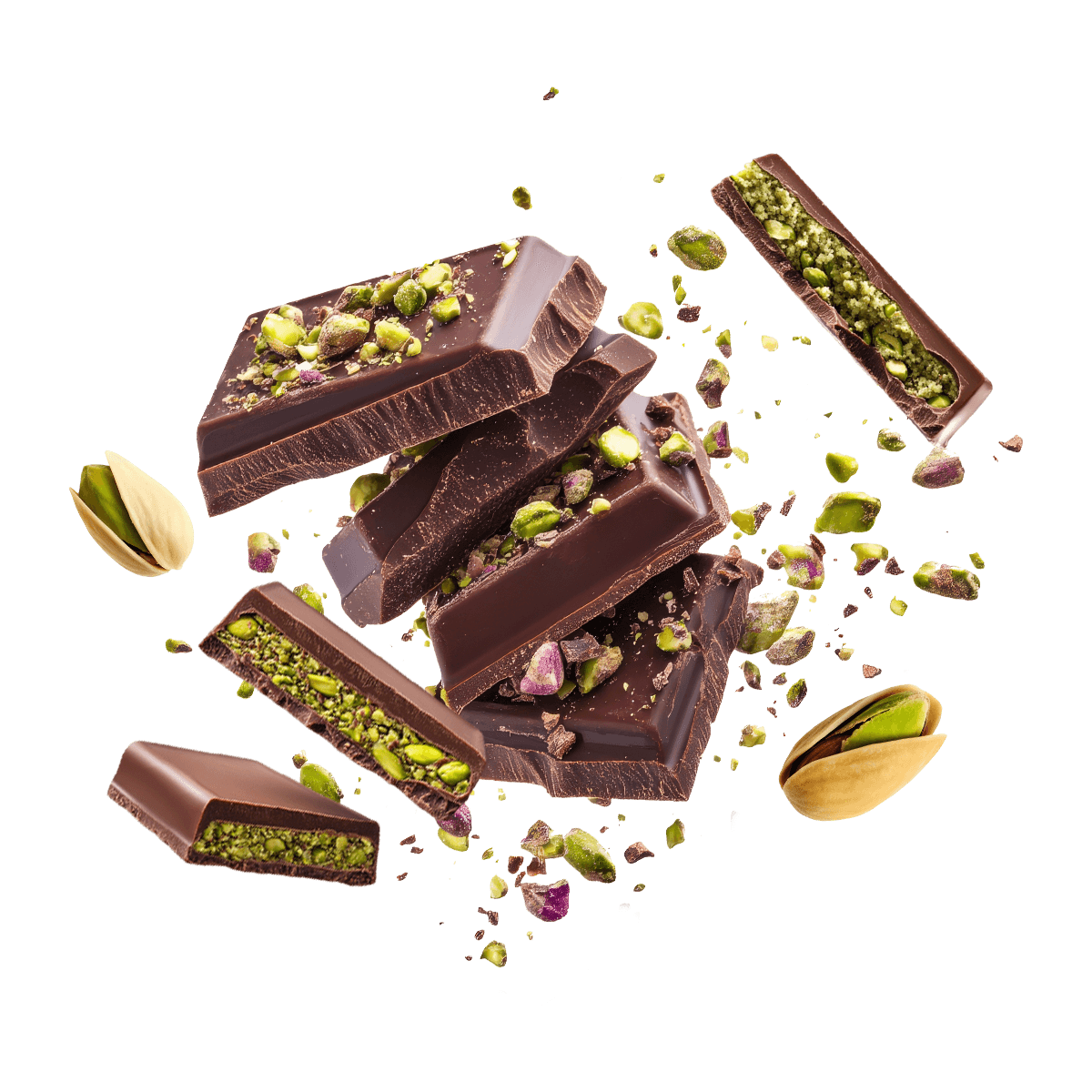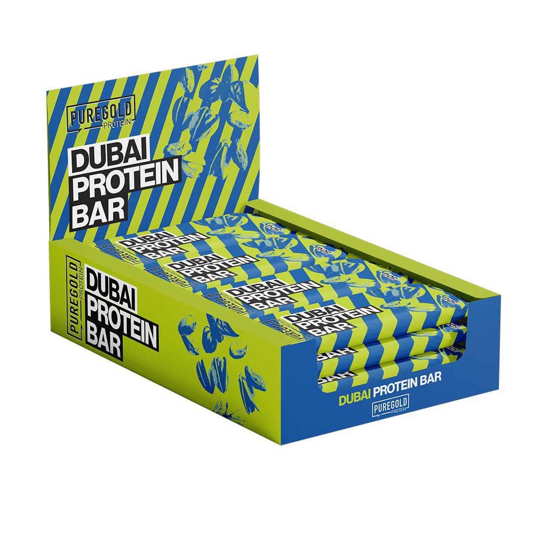 Složení: 28 % kakaová mléčná poleva se sladidlem (sladidlo: maltitol, palmojádrový tuk, kakaový prášek, sladká syrovátka, mléko v prášku, odstředěné mléko v prášku, emulgátor: sójový lecitin), zvlhčovadlo: glycerin, 12 % pistáciový krém s kadayifem a se sladidlem (sladidla: maltitol, sorbitol, rostlinné oleje: řepkový, slunečnicový, palmový; kadayif: pšenice mouka, voda; pistáciová hmota, odstředěné mléko v prášku, mléčná syrovátka v prášku, máslo, emulgátory: slunečnicový lecitin; polyglycerin-polyricinoleát, karamelizovaný cukr, jodizovaná sůl, barviva (komplexy mědi chlorofylů a chlorofylinů, karamel, kurkumin; antioxidant: alfa-tokoferol, aromata), 9% hydrolyzovaný kolagenní peptid, 9% syrovátkový izolát bílkovin, sójový izolát bílkovin (7%), palmový tuk, slunečnicový olej, sladidla: sorbitol, maltitol; lupina bílkovina, stabilizátory: polydextróza, xanthanová guma; odstředěné mléko v prášku, aromata, kyselost regulující látka: kyselina askorbová; emulgátor: sójový lecitin; kypřicí látka: uhličitany sodné; sladidlo: sukralóza.